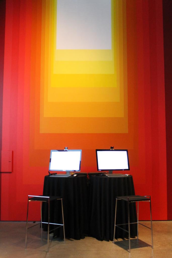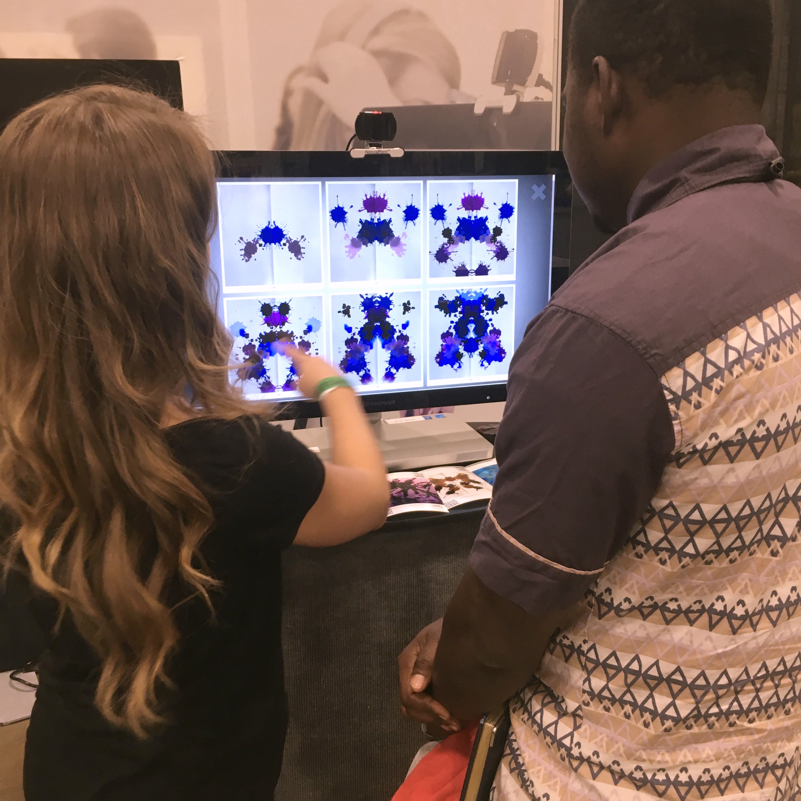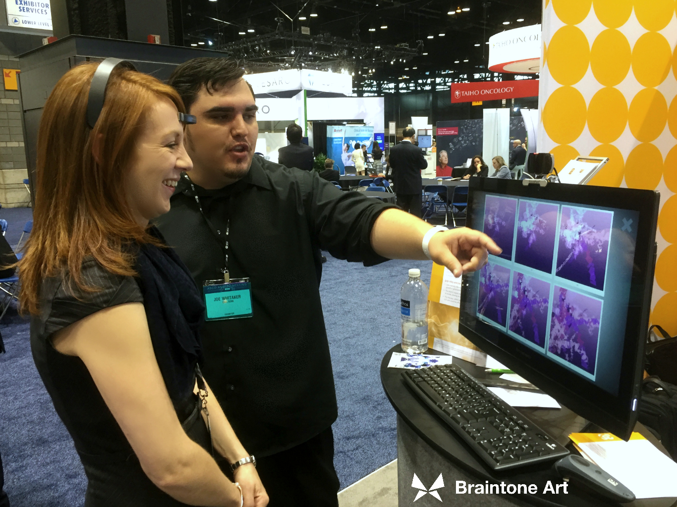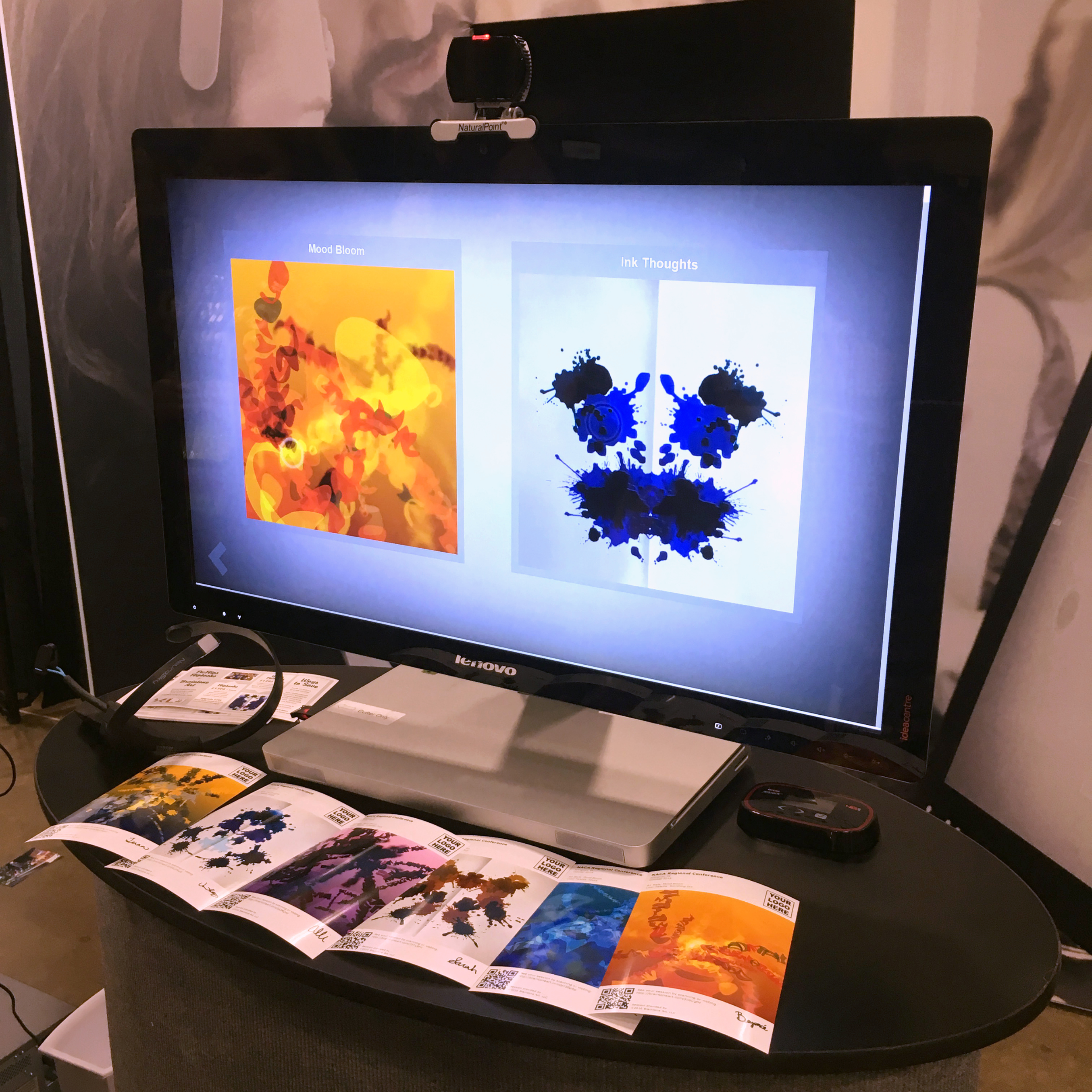 We use a state-of-the-art EEG headset. It collects your brainwave information and analyzes what your brain is doing. Specifically, we collect how you're feeling. When you begin Brain Painting, this information streams wirelessly in real-time through the Braintone Art Imagery Generation Engine to project your emotions as abstract artwork on the digital canvas.