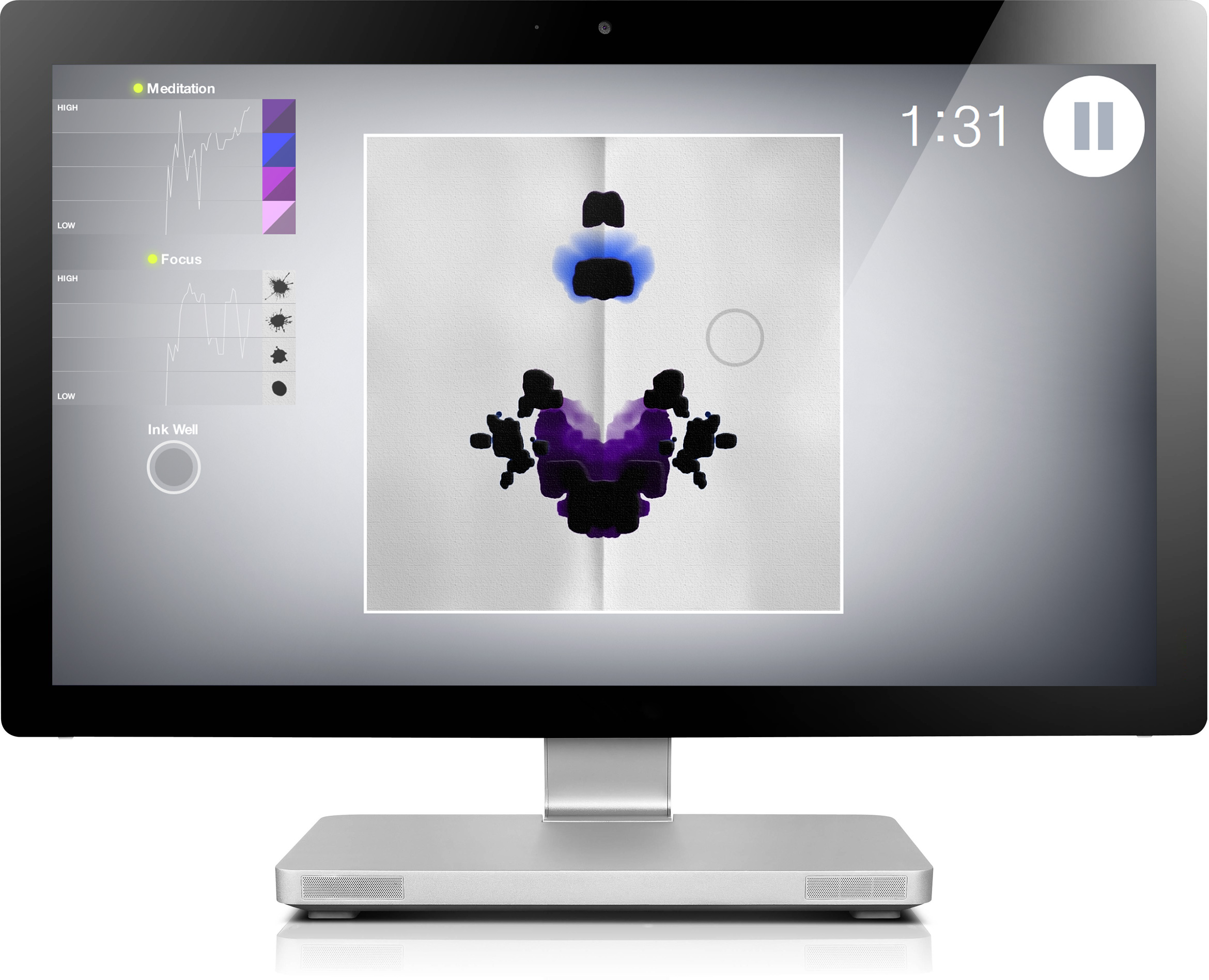 This is an evolving work of art, transforming with every shift of your brain activity. Every ten seconds the current visual state was recorded. When you've completed your painting, you can review and choose your favorite moment as the final artwork.
